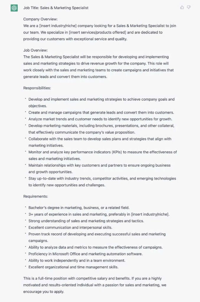 Using ChatGPT to write job descriptions offers some serious benefits: